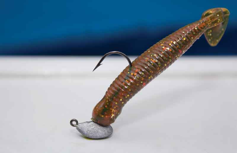 The lesson of rigging soft plastics straight is an essential element when using fast rips or the popular ‘burn and kill’ technique commonly associated with flathead or bass fishing. However, because the majority of trout and perch applications require a slow, more methodical retrieve, rigging the soft plastis dead straight is not paramount.