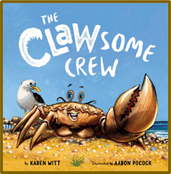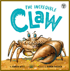 The sequel, The Incredible Claw, written by Karen Witt, and illustrated by Aaron Pocock, is published by Goatopia Publishing. It’s the second book in a trilogy about a crab on a mission to stop a greedy fisherman from catching all the crabs in the bay!