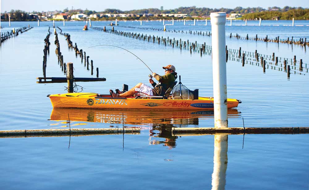 So once you’ve selected an area or a set of specific racks to fish you then need to decide which parts to target? At this point its’ time to bring up the specific advantages of fishing racks from a kayak. A yak can quietly slip into spots a boat or landbased angler simply cannot. There is a set of racks I fish every time I go to Forster that can only be accessed by entering through water too shallow for a boat and even if they could get in the space between the rack is too skinny for even the smallest boat but my PA14 fits up them perfectly. Think of it in terms of fishing pressure. There are some amazing racks that only have the outside of them fished most of the time but you can access the water that doesn’t see lures too often and this helps a lot. Try to think of racks as having high, medium and lower percentage areas. Concentrate around the high and fish the medium and lower on your way to the next high. The high percentage areas are the ends of the racks and the poles that the racks are stood on. Many racks feature larger poles at certain points and smaller ones throughout the rest. The larger poles would be the high and the smaller poles, the medium. Make multiple casts around the ends of racks, a couple on the larger poles and just one around the smaller poles and of course give everything else a go while you are going past it.