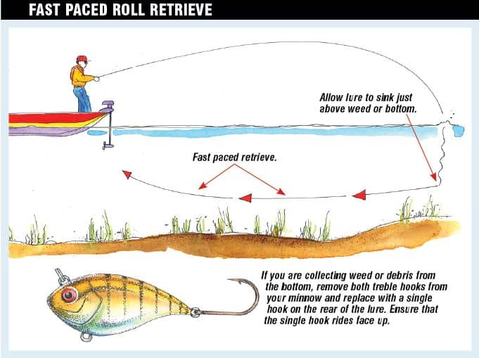 Soft plastics and hardbodied shallow running minnows both work well but last season we experienced some exceptional capture rates while running rattling, bibless minnows over the flats. This style of lure allowed extra long casts and the inviting rattle, combined with the tight, shimmering vibration proved the down fall of many nice flathead. The secret to using bibless rattlers is to retrieve them as close as you can to the bottom without allowing them to connect and possibly fouling up with debris (See Fact Box – Fast Paced Roll Retrieve). Working lures in water between 30 and 60 cm deep, approximately half way through a dropping tide, saw an increase in catch rates.