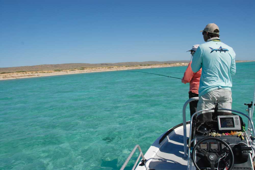 Denise and guide Alan Donald working the flats inside Ningaloo Reef.