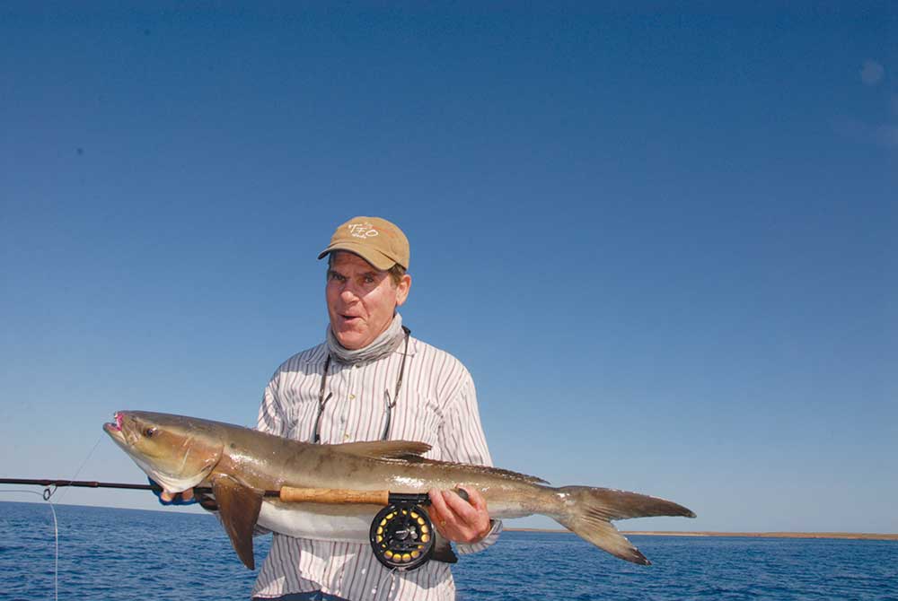 For the boating fly angler the horizon’s the limit. This is deep water fishing at its best – with over 250 m of water only 11 km offshore west of Ningaloo Reef, yet it’s the surface where all the action takes place. It’s entirely visual and when it comes down to the nitty gritty a true test of both tackle and the fly angler’s capability. When push turns to shove, with a marlin or other fly rod prize heading for the horizon and the fly reel’s fit to spin itself to bits – the moment of truth looms – and one begins to ask oneself, “am I good enough for this or has my mind written a cheque my body cannot cash?”