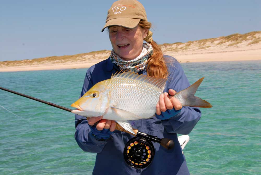 Alan had the leader, so the fish was ‘caught ‘under IGFA rules. For Denise, the pinnacle of her fly fishing career had been reached as well.