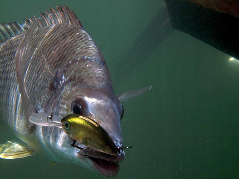 As I was first introduced to breaming using a braid/fluorocarbon line combination it is certainly my preference when throwing hardbody lures; as the sensitivity suits my style of fishing. Gaining in popularity is fishing hardbodies with straight-through fluorocarbon line. Both techniques have several pros and cons, but I believe at the end of the day it really comes down to the angler. Braid certainly gives great sensitivity, durability and versatility as it can be matched with several different strength leaders. On the flip side, braid can also have ‘over-sensitivity’ that can spook flighty fish when the bite has shutdown and when matched with the tedious job of retying leaders, this can be enough to sway many anglers to the straight-through fluorocarbon option. Fluorocarbon also possesses great versatility and durability but its true strength lies in its flexibility. Its stretching capabilities can be an anglers’ best friend when fighting stubborn bream; as their runs and lunges can be absorbed through the line therefore reducing the chances of pulled hooks and lost fish. This option also has its disadvantages with the biggest being the lack of sensitivity especially when setting hooks in a bream’s mouth. Line stretch can add a time delay to the angler when feeling a lure hit or a take which can lead to missed hook ups or ‘spat’ hooks therefore decreasing the number of fish caught. Also the lack of opportunity to change leader strength while fishing can leave an angler fishing too light or to heavy depending on changing terrain. As stated before it really comes down to what the angler feels best suits their fishing style as this may vary between each angler and their surrounds.