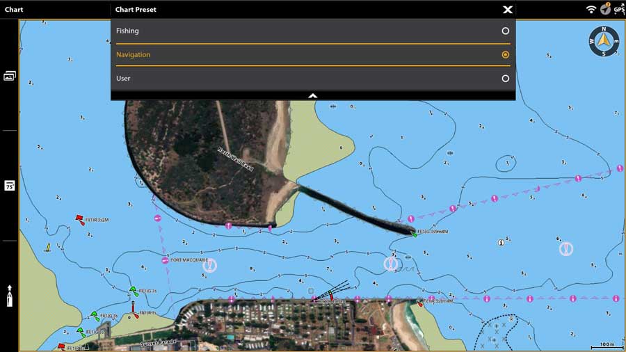 Designed with ease-of-use as a priority, anglers can easily adjust the CoastMaster chart to match their situational needs by selecting from the customisable view presets: navigation view, fishing view, and a user-defined preset. With a vast offering of fishing and navigational data, the intuitive preset views make it easy to display the most important information.