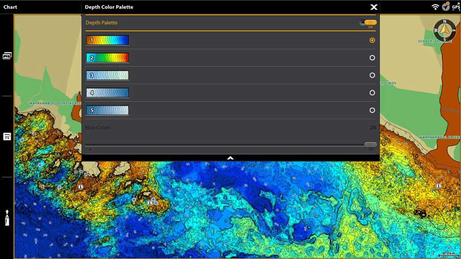 CoastMaster also features VX technology, with fast loading, panning, and zooming of charts, ensuring the chart will keep up with an angler’s every move. VX technology also delivers five color palette options to suit any angler’s need.