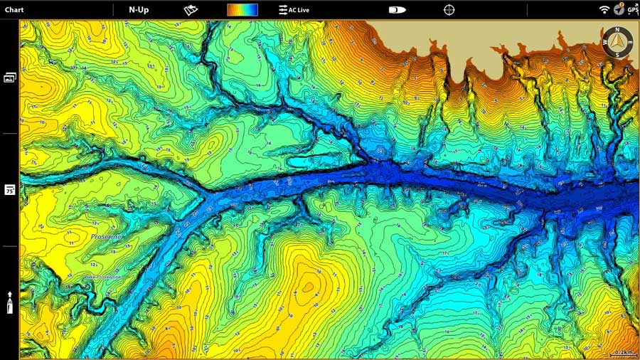 The new CoastMaster chart gives anglers the very latest information to identify key fish-holding areas by providing accurate spot soundings, depth contours, points of interest and navigational aids to ensure safe navigation. Anglers will also be able to monitor fishing conditions with a predictive tide and currents tool that offers details about the speed and direction of currents and the direction and height of tides precisely for the vessel’s location. Anglers can clearly identify productive depth ranges or shallow hazard areas, and a water level offset feature allows for the adjustment of depth contours and shorelines to match current water levels.