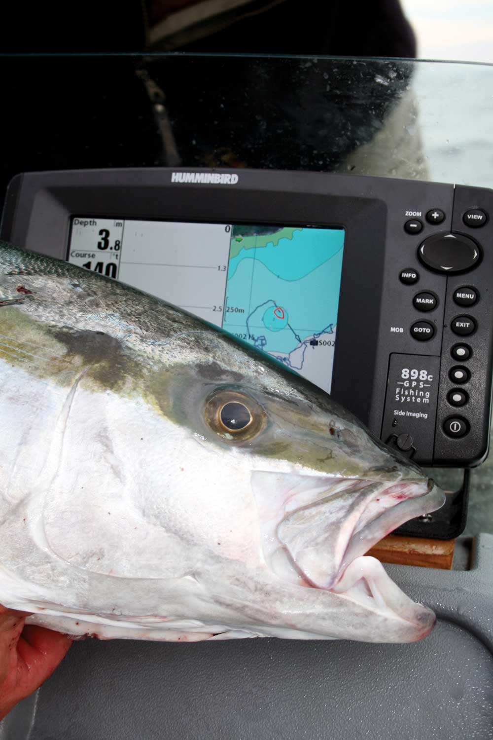Many well known kingfish locations involve targeting fish in some seemingly ridiculous shallow water. In these situations kings can be found wandering around in shallow reef areas rather than holding on a significant piece of structure. By building up a bank of hook up and sighting locations on your GPS one can get a pattern of likely locations. Once again your GPS is handy for returning to the school after being dragged away from the spot by a fish as there may be little obvious structure or fish arches on the sounder to give away the presence of the rest of the school.