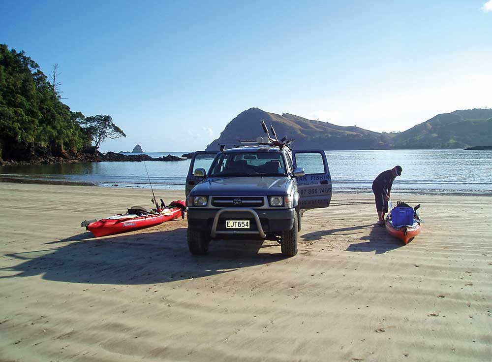 beach access for launching kayaks. The area has some major reef systems that span across to Little Bay and much further out with these patches of foul ground containing some deep drop offs and big fish. Nearly every bit of coast line north of here is ideal fishing country – offering plenty of places to find big snapper and kingfish however they are only accessible from Waikawau and Port Charles which is a further 30 minutes up the road.