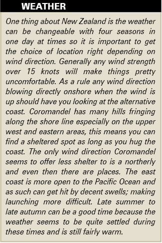 Regarded as one of New Zealand’s best locations when it comes to holiday destinations, Coromandel boasts stunning landscapes, plenty of tourist attractions and the prime coastal environment for water sports activities. With around 400 km of coastline and over 100 offshore islands, Coromandel is one of New Zealand’s marine playgrounds. The peninsula has three coastlines that are facing east, west and north directions and within these three coastlines are many sheltered bays, estuaries and harbours so there is always somewhere to go and enjoy your time on the water no matter what the wind is doing.