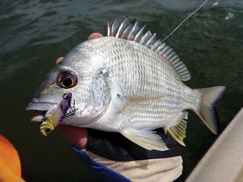 When the tide is full and covering the flats a blade is the perfect lure as it allows you to throw long casts, even from the seated position in the kayak and in turn cover plenty of ground. Raise the rod tip and speed up the retrieve a little to work the blade over the top of weed beds, oysters and snags, and then drop the rod tip or slow the retrieve to allow the blade to swim deeper into drains and sandy pockets in the weed.