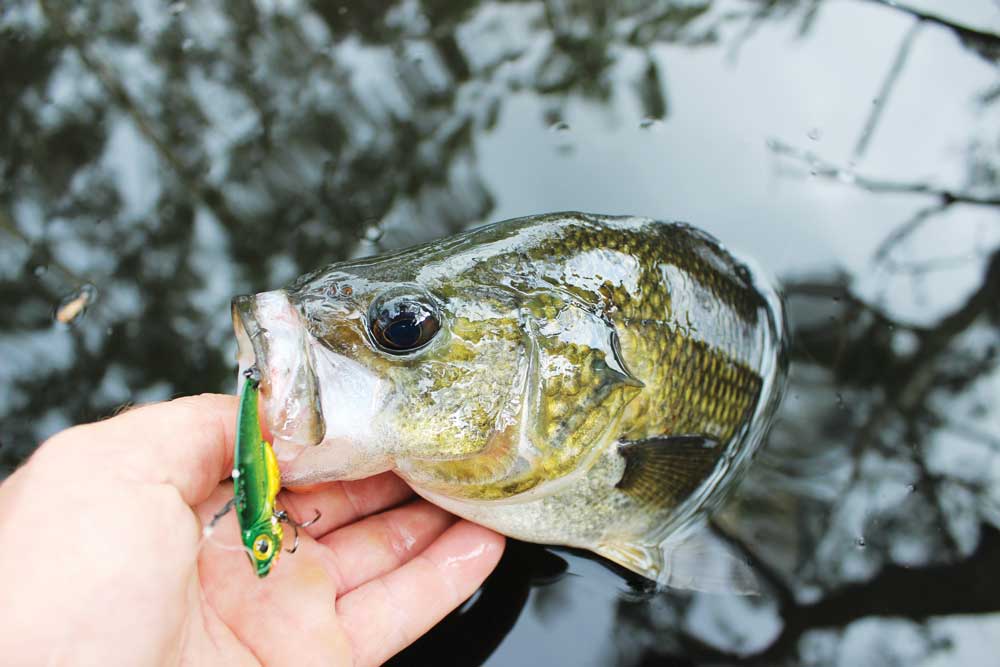 - Owen McPaul with a small water bass, another species that can’t resist a slow rolled blade.