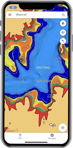 The premium version of the Lowrance App includes custom depth shading – a key feature for anglers – as well High-Resolution Bathymetry Charts, offline maps and global charts, Automatic Identification System (AIS), Lowrance App Traffic, 5-day weather along the route and 5-day weather overlay, GPS navigation data and line and track record.