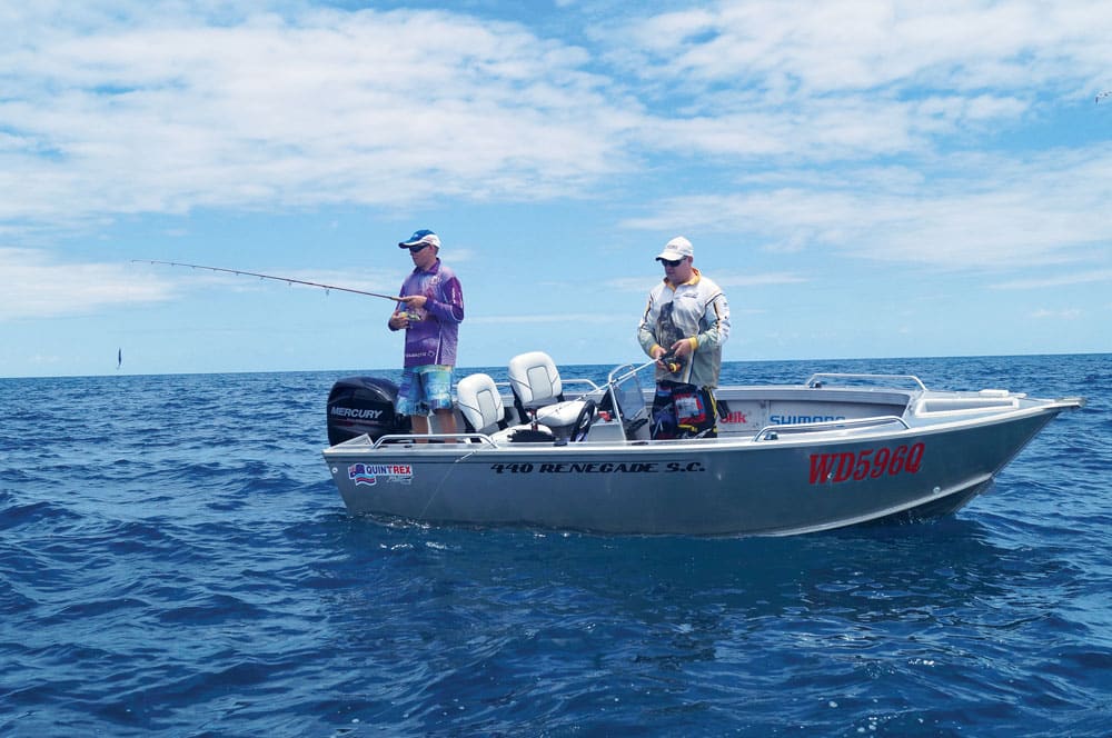 Having targeted a lot of mackerel in these sorts of locations, the most productive approach we have found is to pinpoint the structure with your sounder and GPS. Then you make repeated short drifts across the top of it so that your lures spend the maximum amount of time being retrieved through the potential strikezone. Again, this is not an approach for lazy fishos, as your drift may only be 100 metres or less, and each time you find yourself more than a long cast off the hotspot, you need to motor back upcurrent and start again. After a decent spin session, the track on your GPS screen starts to resemble a well-used scribble pad.