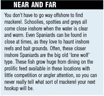 South east Queensland and northern New South Wales waters seem to be a real stronghold for most of the mackerel clan and anglers in this fish rich region can confidently expect to encounter at least four members of the family on a regular basis. These include school, spotted, grey and Spanish mackerel.