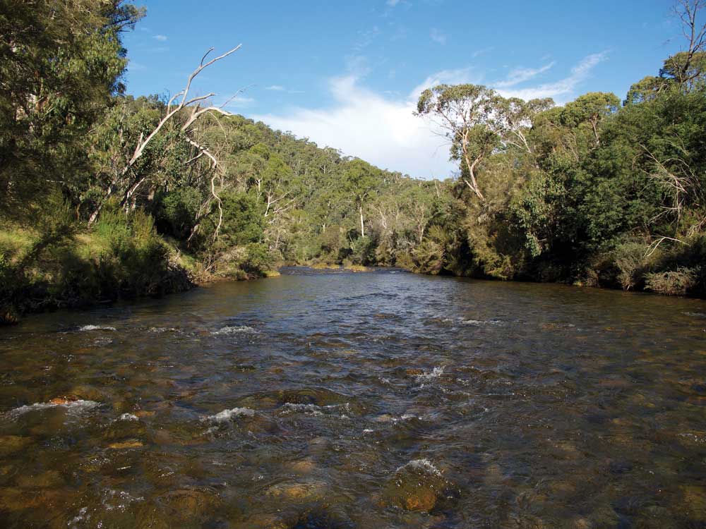 The majority of the rivers and streams in the Snowys are best described as freestone – rocky and clear, with a pebble bed and an occasional sandy/silty pool thrown in for good measure. There are also a few streams that, even though they are basically rain fed, resemble spring creeks. One of the wonderful things about the Snowy/ Monaro region is the variety of the waterways, each with a unique identity.