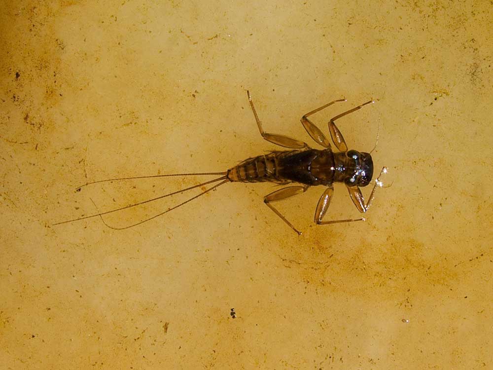 These little guys are also common and they seem to be present in many waters in the region. I call them the Little Orange Spinner. (Most of our common mayfly names relate to the colour of the adult.) Also, like many of our mayflies, these belong to the extremely varied Leptophlebiidea family.