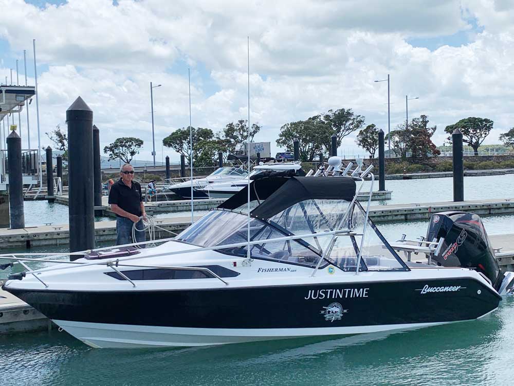 They’ve owned JUSTINTIME, a Buccaneer 605 Fisherman, from new since 1992 and have always powered it with Mercury outboards.