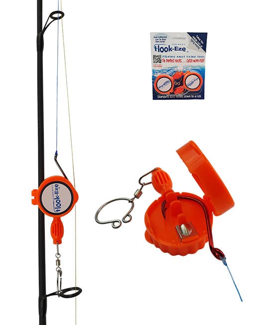 Hook-Eze helps tie the Bimini Twist, Improved Clinch Knot, Yucatan, Blood Knot, Trilene Knot, FG Knot and even more fishing knots! Compatible with a variety of tackle, including swivels, hooks, jigheads, speed clips and a selection of flies.