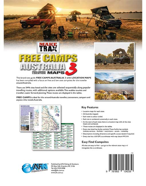Make Trax FREE Camps Australia is the essential guide to Australia’s free and low cost camp sites. With 5496 free and budget sites around Australia listed. Make Trax FREE Camps with Location Maps contains everything you need to know to prepare for a fantastic journey of discovery into Australia’s great outdoors.
