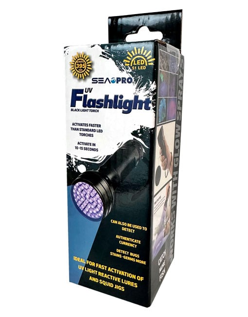 The Sea Pro UV Flashlight is ideal for fast activation of UV light reactive lures and squid jigs, constructed from sturdy aluminium.