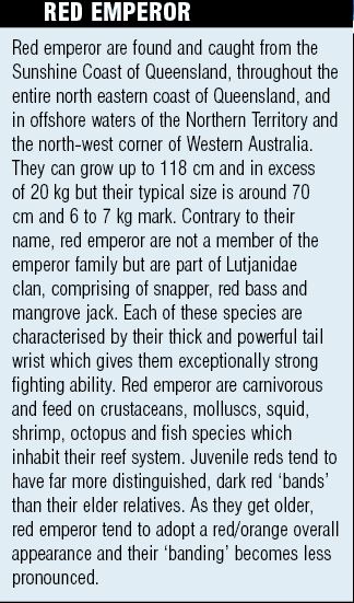 Red emperor are the undeniable kings of the Queensland offshore reef. They have an epic look, fight like bulls and are great on the plate. These fish can be tough to catch; Chris Raimondi provides some key tips and techniques to help you snare a few..