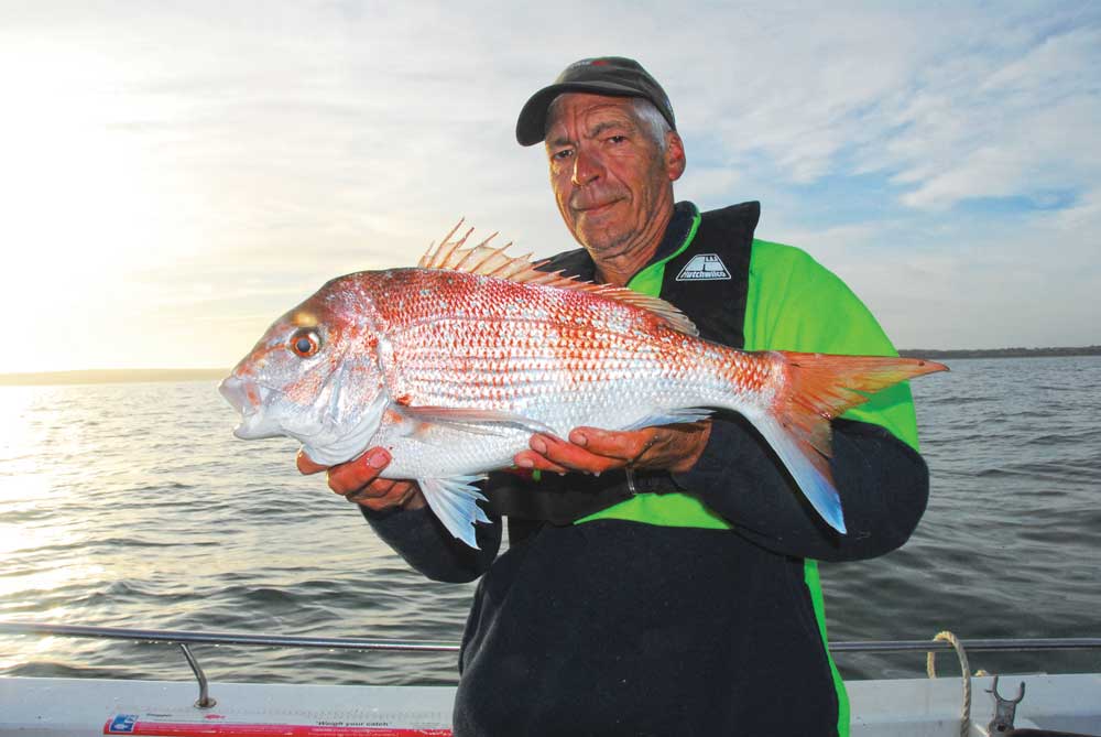 Graeme Bucknall shows off an early morning snapper showing the pinky marks you would expect to see on smaller fish.