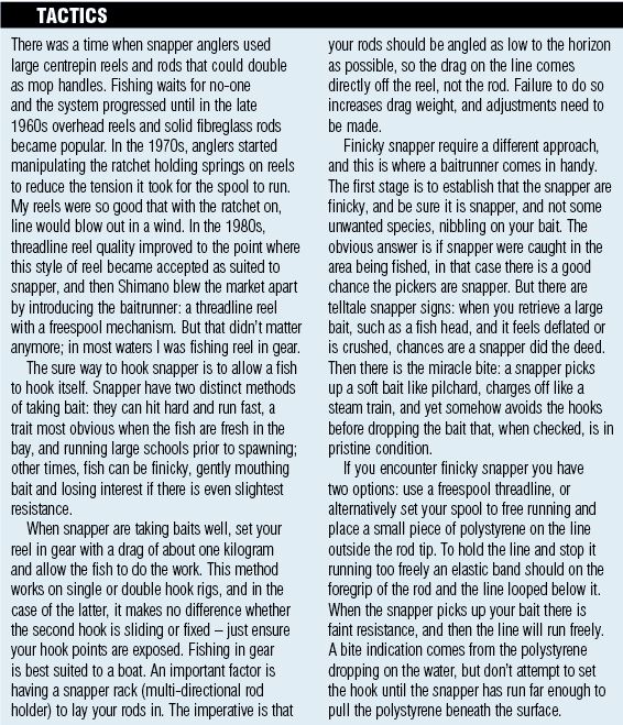 Because of the way I fish for snapper, reel in gear on a drag setting of about 1.5 kg, I don’t use a freespool threadline. However, that isn’t to say that there isn’t a place for them when the snapper are finicky, particularly in shallow water up to about 10 metres.