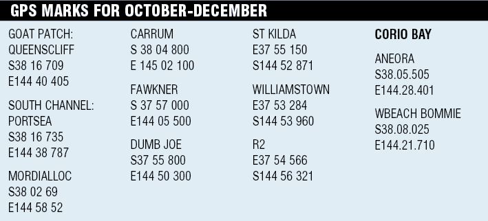 Snapper season in Port Phillip fires in October and peaks in November. Historically, Melbourne Cup weekend, when the Tea Tree Snapper competition runs, is a highlight. Still, there are no guarantees, so don’t go marking up your calender sick days in advance. Snapper migration times based on previous seasons are like train timetables: useful, but not always reliable.