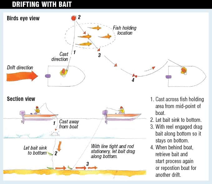 This question raises three big factors. The first two involve how an angler must drift to encounter as many fish as possible, and how the angler must position the boat so the fish aren’t spooked when fishing different depths of water. The third consideration includes how to best present a bait or lure while drifting so that fish are fooled by it. We will cover the last factor in the techniques section below, but right now, let us look at the initial two factors and clear up any confusion about how to get the best out of your drifting pursuits.