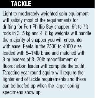 Traditionally Port Phillip anglers bait fish for snapper from an anchored boat, using berley as an attractant, but smart anglers are now using a drift approach to