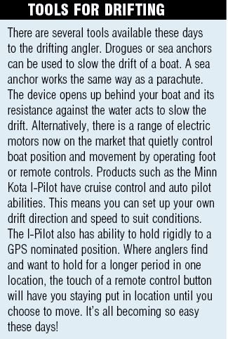 It is not uncommon to hear of anglers discovering the benefits of drifting by watching a nearby mobile angler catching some good fish. Many offshore anglers start their soft plastic endeavours by fishing from an anchored boat. As their confidence in the lure choice grows, many of them begin to experiment with the drifting approach. The effective and enjoyable nature of drifting means many anglers now choose to spend most of their fishing days free of the anchor.