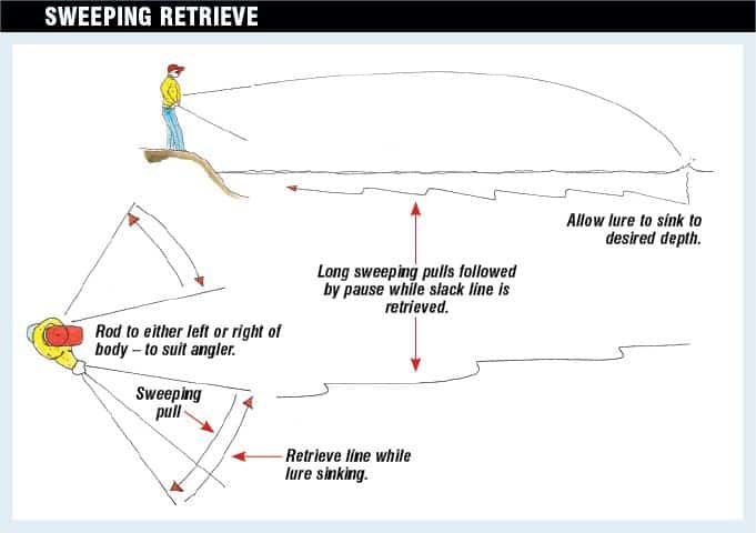 Sweeping is a technique that was taken straight from the GT addicts’ play book. It involves letting the stickbait sink and then using the rod to make long sweeping pulls followed by a pause as the slack line is retrieved. The sweep causes the lure to have a more uniformed, natural and consistent swimming action, like a fleeing baitfish… that has to stop and ask for directions every three metres. A lot of hits come on the pause after a sweep or as the lure begins to move after the pause. It’s not a particularly fast action, but still very effective.