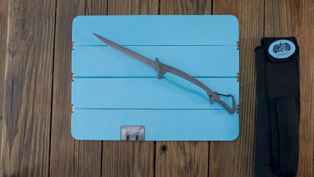 The Toadfish Stowaway Fillet System combines both the Folding Fillet Knife and Folding Cutting Board, in a neoprene case that is designed for ease and safety of transportation. All items are available individually or as a Stowaway Fillet System in two sizes, a 7” knife and standard board, or 8.5” knife and XL board.