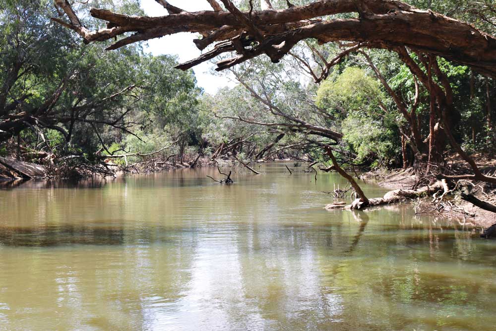 Early the next morning, I was greeted to my first proper glimpse of the river. It looked completely different to what I saw the night before as we shone the torch after hearing the enormous splash of what we could only assume was a rather large crocodile. Only 15 or 20 m wide, its sandy bottom was littered with dead fallen timber. The section we had camped beside the night before was relatively shallow and the clear water pushed through at the pace of a fast walk. The darker, deeper sections around some of the snags screamed ‘fish’.