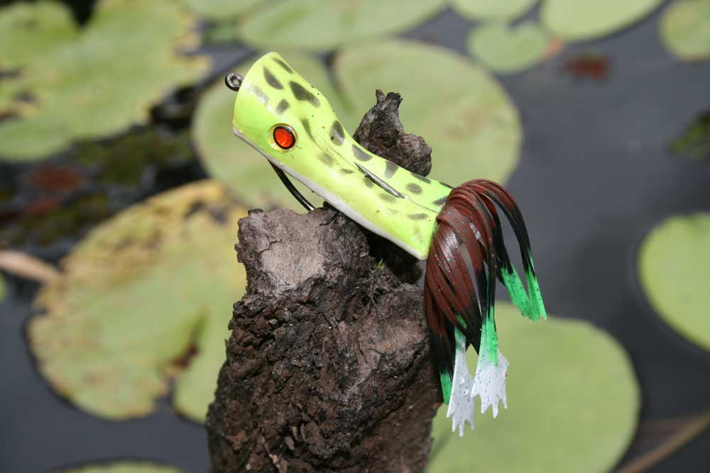 Most of my surface fishing is done with frog imitations. These are either hollow bodied lures, or your more typical soft plastics. To fish these, it’s simply a matter of flipping your lure right back into the thick of the weeds before working it back with a retrieve which mimics a frog jumping from pad to pad. Slow and steady with a few small leaps and lots of nice long pauses when your lure is sitting on top of a floating pad is the go and this type of fishing requires a bit of patience on the part of