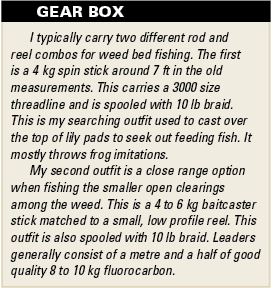 On a really good day, the sound of bass blowing up through the pads as they feed will be easy to hear, and this can allow you to target areas where active fish are hunting. Trust me, knowing there is a bass lurking somewhere below your lure – just waiting to strike – really gets the adrenalin going. The biggest problem is not reacting too quickly and pulling the lure out of the fish’s mouth before the hooks have found their mark.