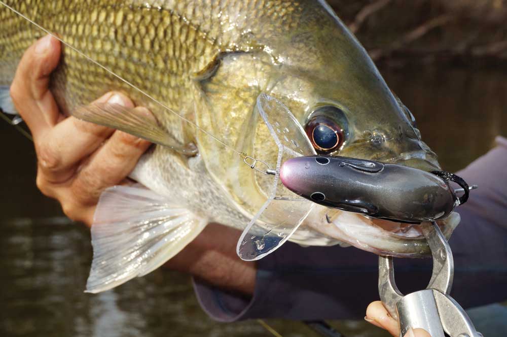- Surface lures like this Kuttafurra Mouse are a big hit with both the barra and bass on the Kolan.