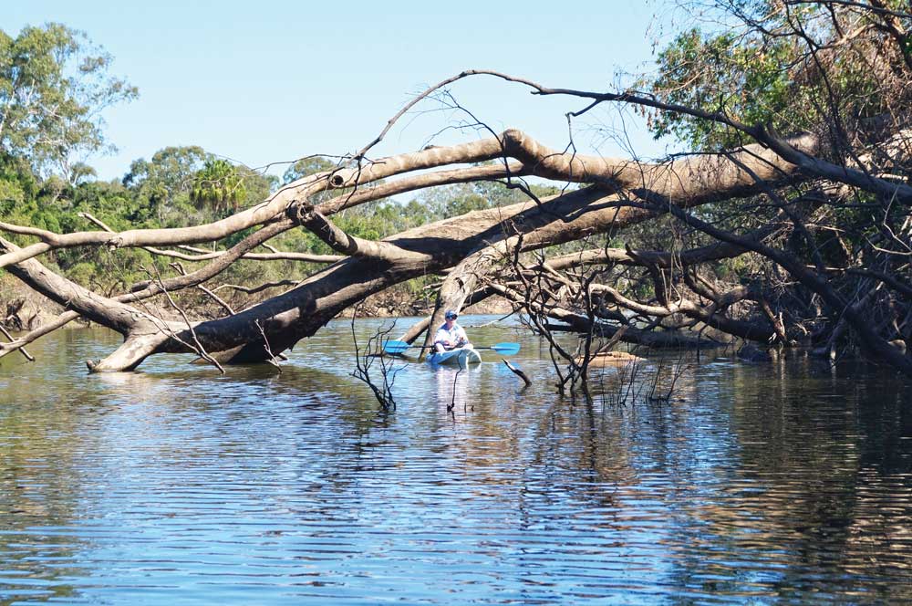 The vast majority of kayakers usually target more common estuary species like bream and flathead or smaller freshwater targets like bass and yellowbelly: this makes the Kolan River a significant but welcome challenge for many of us ‘yakkers’. Sure there are a few die-hard big barra specialists amongst our ranks, but chasing these huge fish in our stocked impoundments is pretty specialised stuff and it requires a very dedicated and committed approach. Consequentially, it’s not the sort of thing that a lot of kayak anglers would have had a great deal of experience with.