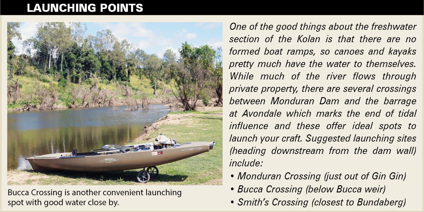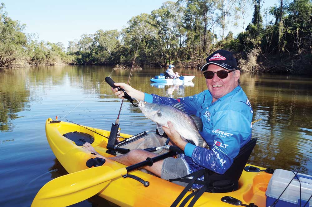 The vast majority of kayakers usually target more common estuary species like bream and flathead or smaller freshwater targets like bass and yellowbelly: this makes the Kolan River a significant but welcome challenge for many of us ‘yakkers’. Sure there are a few die-hard big barra specialists amongst our ranks, but chasing these huge fish in our stocked impoundments is pretty specialised stuff and it requires a very dedicated and committed approach. Consequentially, it’s not the sort of thing that a lot of kayak anglers would have had a great deal of experience with.